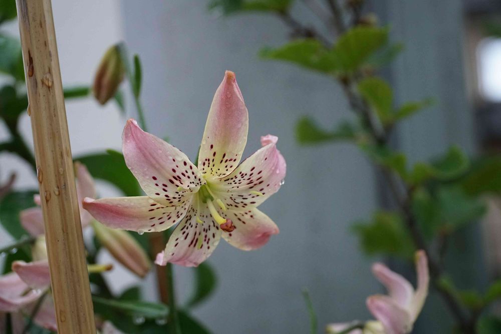 シャンデリアリリー コサージュ。6月12日撮影。今年の新顔さんです😊。花粉が出ない品種なのでしょうか❔。