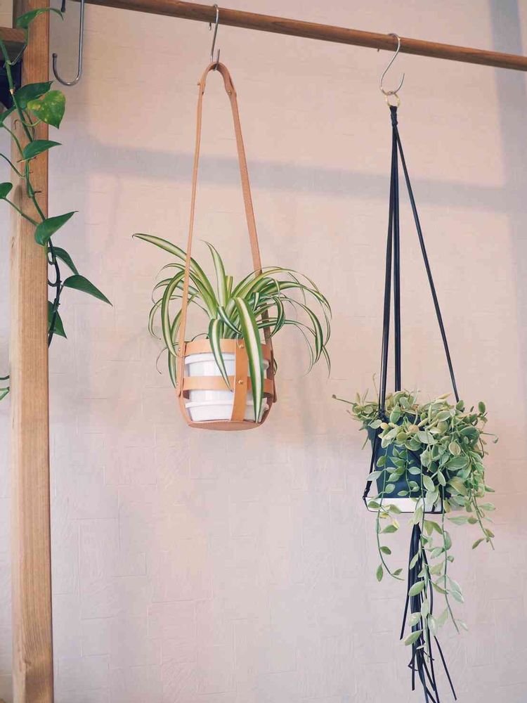 オリヅルランの鉢カバーは新作のハンギングタイプです✨短くもできるし外すこともできます🍀