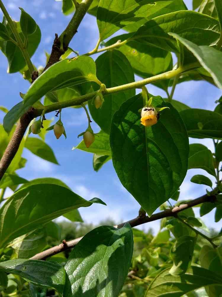 食べた柿の種から💃今年初めて成るかしら?!実の成る木