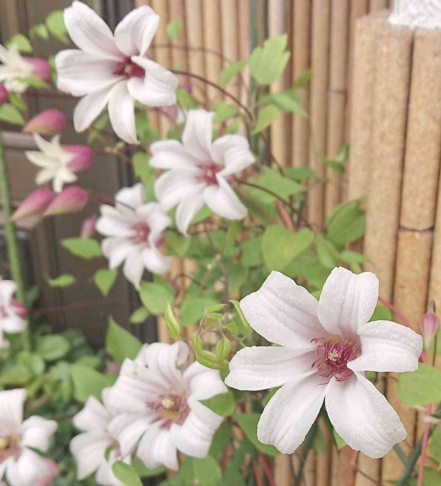 白に赤のシベが特徴的な可愛いクレマチスさんです