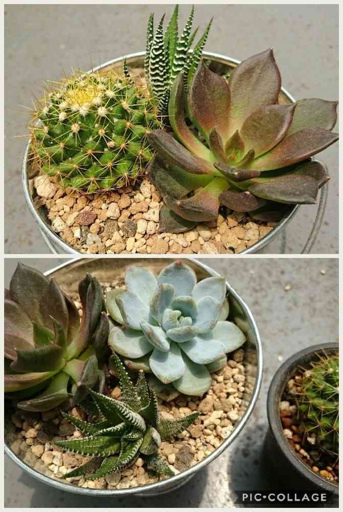 我が家の男前三人衆を寄せ植えてみようと思ったのですが(上)、金洋丸先輩の針でアフィニスが痛そうだったので、ラウリンゼちゃんが代打で入りました(下)。