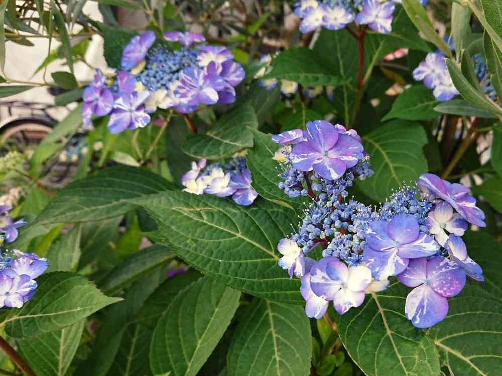 葉の形や株姿から察するに、かなり濃くヤマアジサイの血が入っているように見受けられます。が、ガンガン直射日光に当てても葉焼けもせず、もりもり成長中✩.*˚
