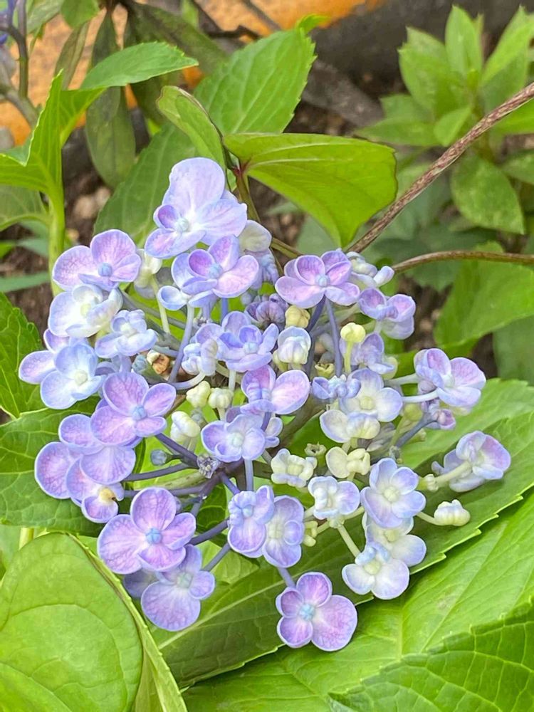 うちに挿し木で残したのはピンク色🌸お外の子はブルー💙で咲いてます。