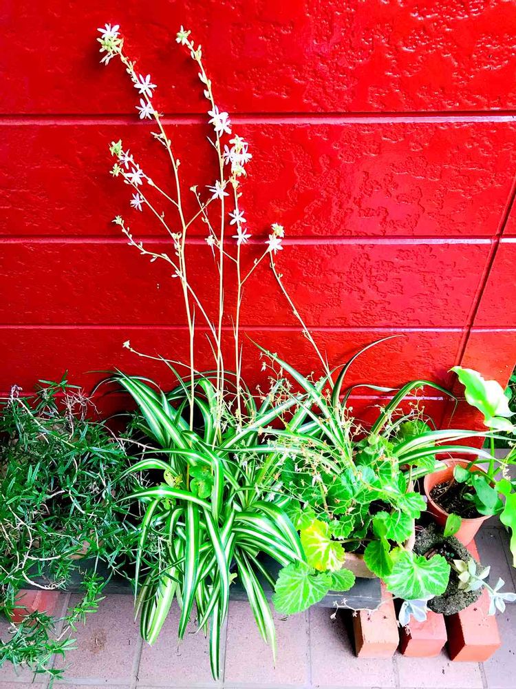 北玄関の鉢植えのオリヅルランの花が咲いてます🤗🌿✨✨