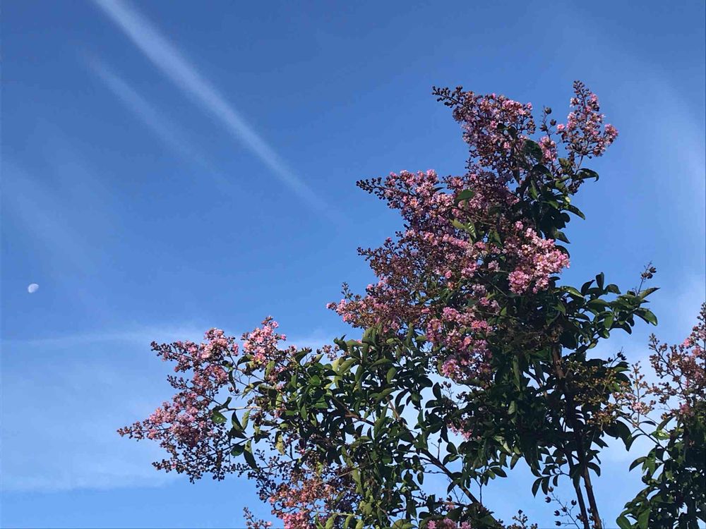 近くの公園では早くもサルスベリが咲き始めました。青空とのコントラストがいい感じ。