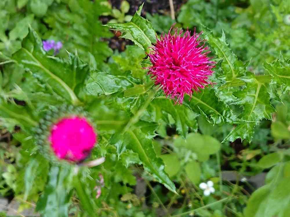 雨の中赤いあざみ咲きました