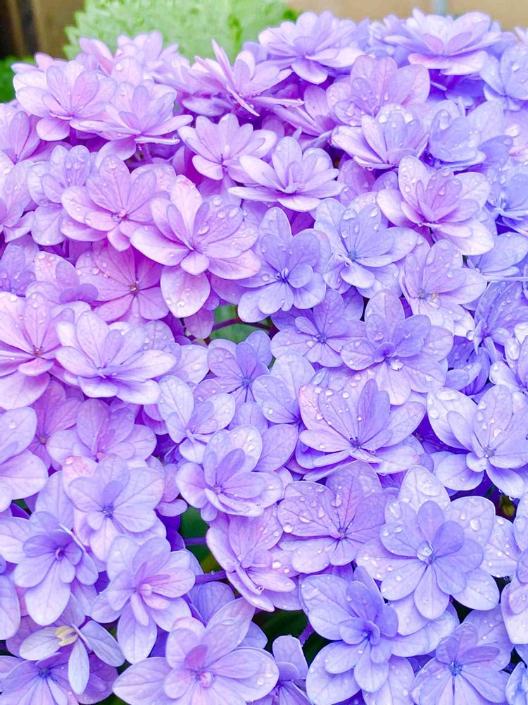 雨粒を纏った美しい色の紫陽花、とっても素敵ですね💙💜