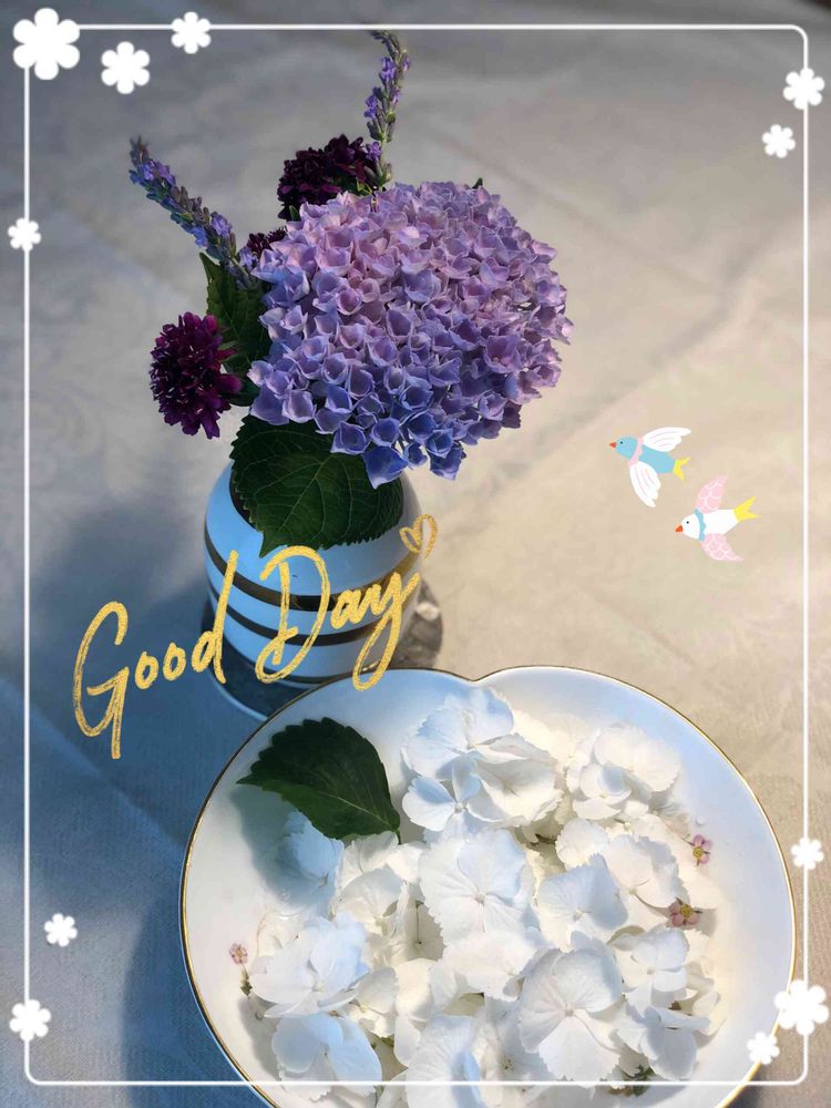 昨日、お友達から、またまた素敵な紫陽花とスカビオサ、ラベンダーを分けてもらいました❣️