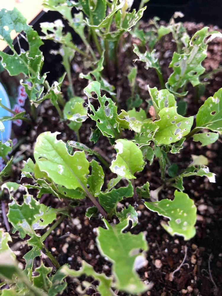 七福神を食べるとは神を怖れぬヤツめ‼️私はマシンガンのように薬を噴霧しました。もし大きくなってくれたら(小松菜です💦)洗って食べます😄
