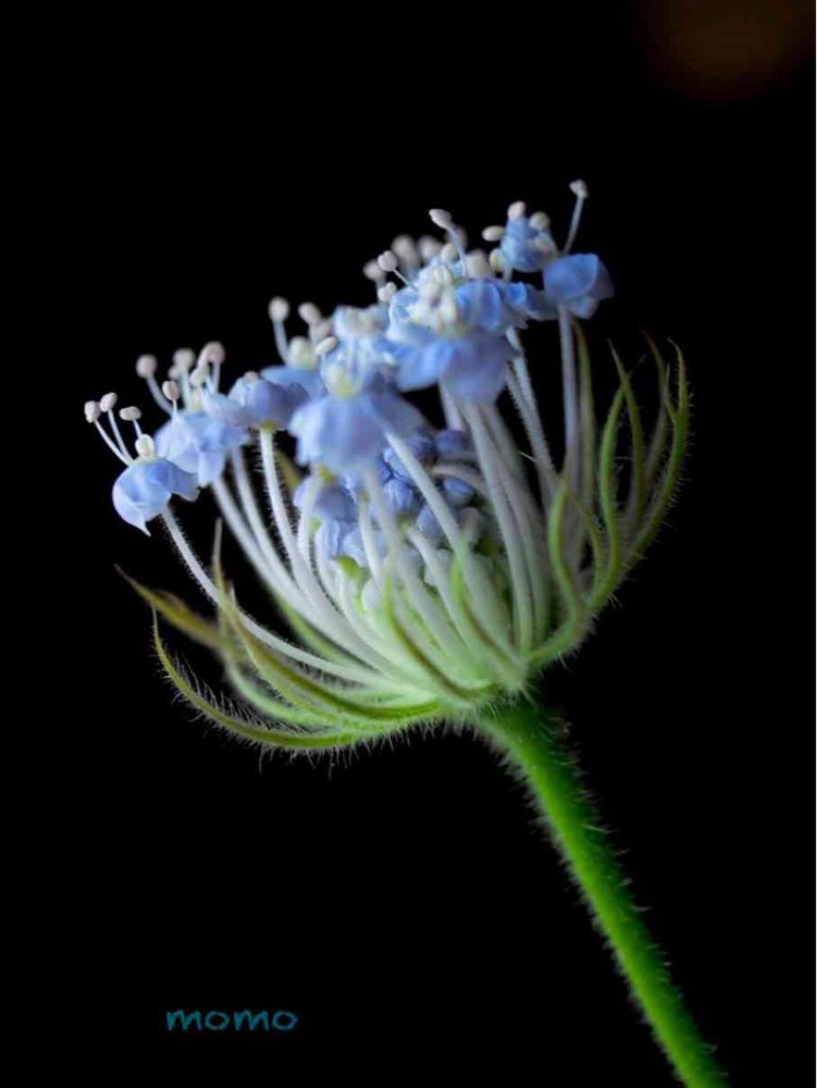ブルーレースフラワー、明るい光の背景も、黒背景も両方似合って素敵ですよね😊