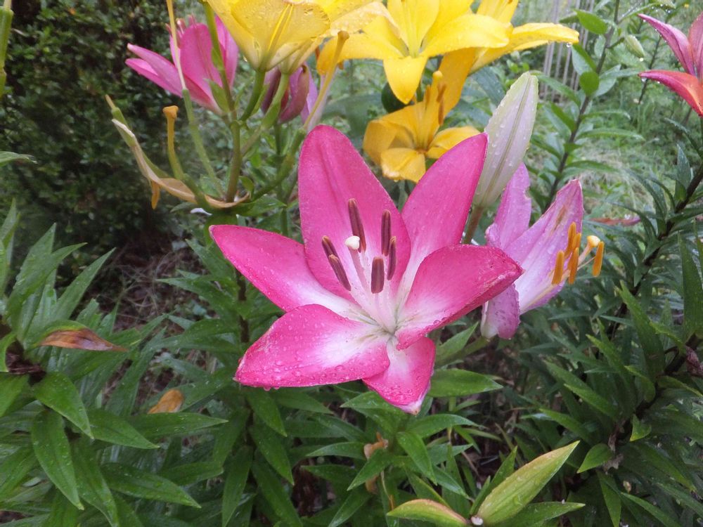 お散歩途中。 先に投稿した黄色い百合の後ろに、ピンクの百合が咲きました。 パチリ