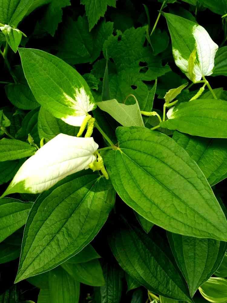 半夏生の頃だけ、頂の葉の下半分が白くなり、白く穂状の花が咲く。どくだみ科の多年草🌿