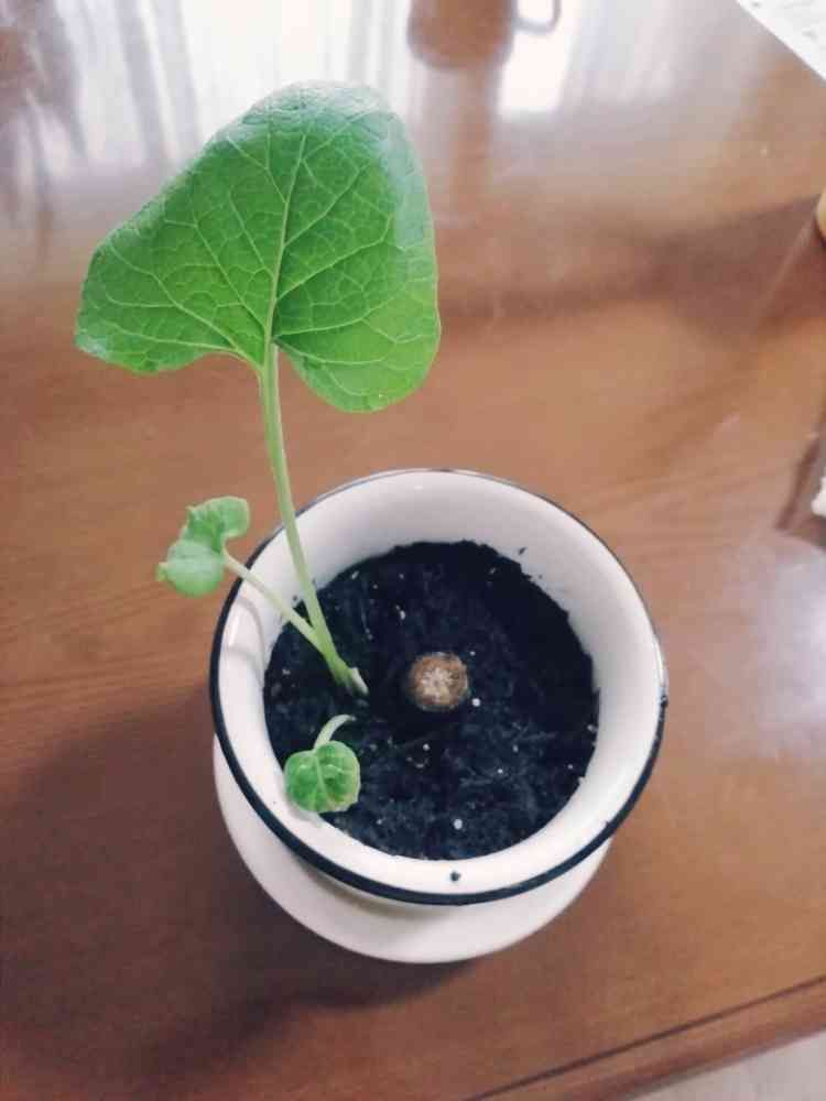 牛蒡。水につけてあった先日投稿した牛蒡です。さらに大きくなり倒れるようになったので鉢に植えてみました。