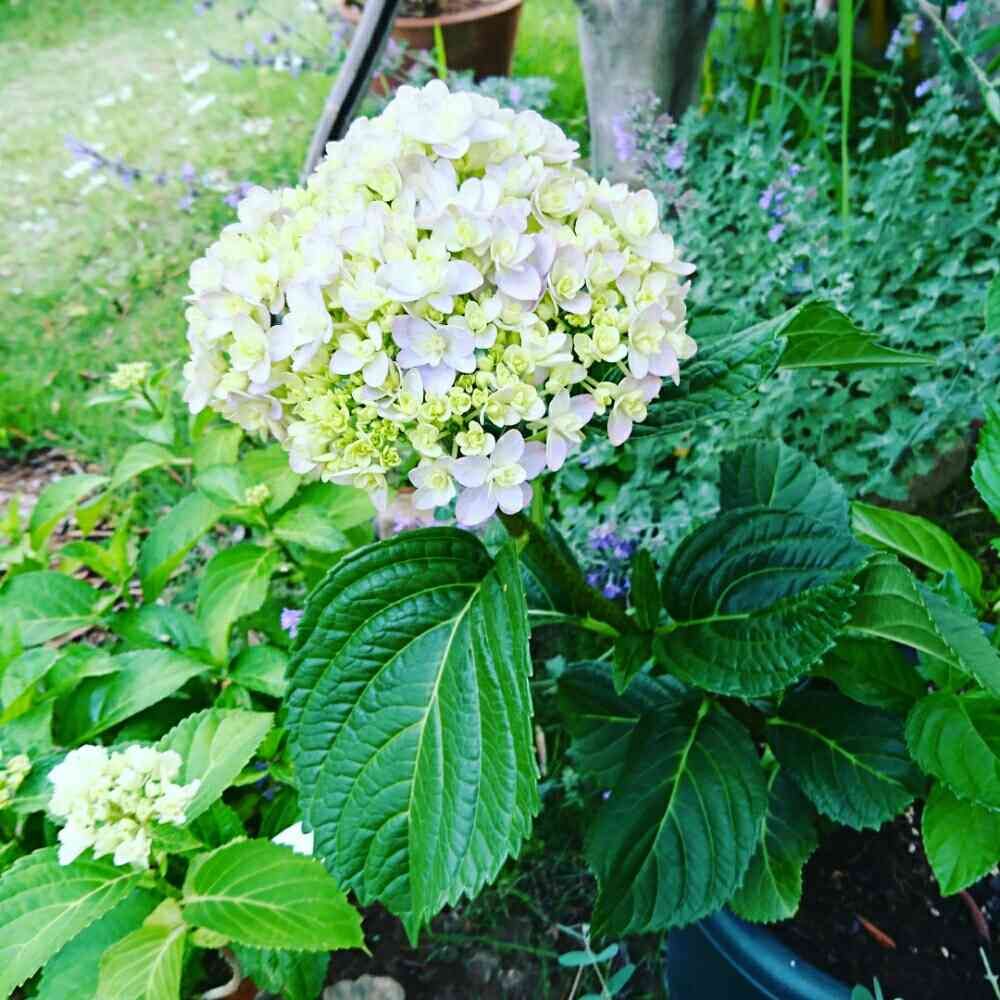 昨年夏に 友達のお庭で可愛く咲いていたアジサイの枝をカットしてもらって挿し木にした枝から 花が咲きました~✨大成功~✨