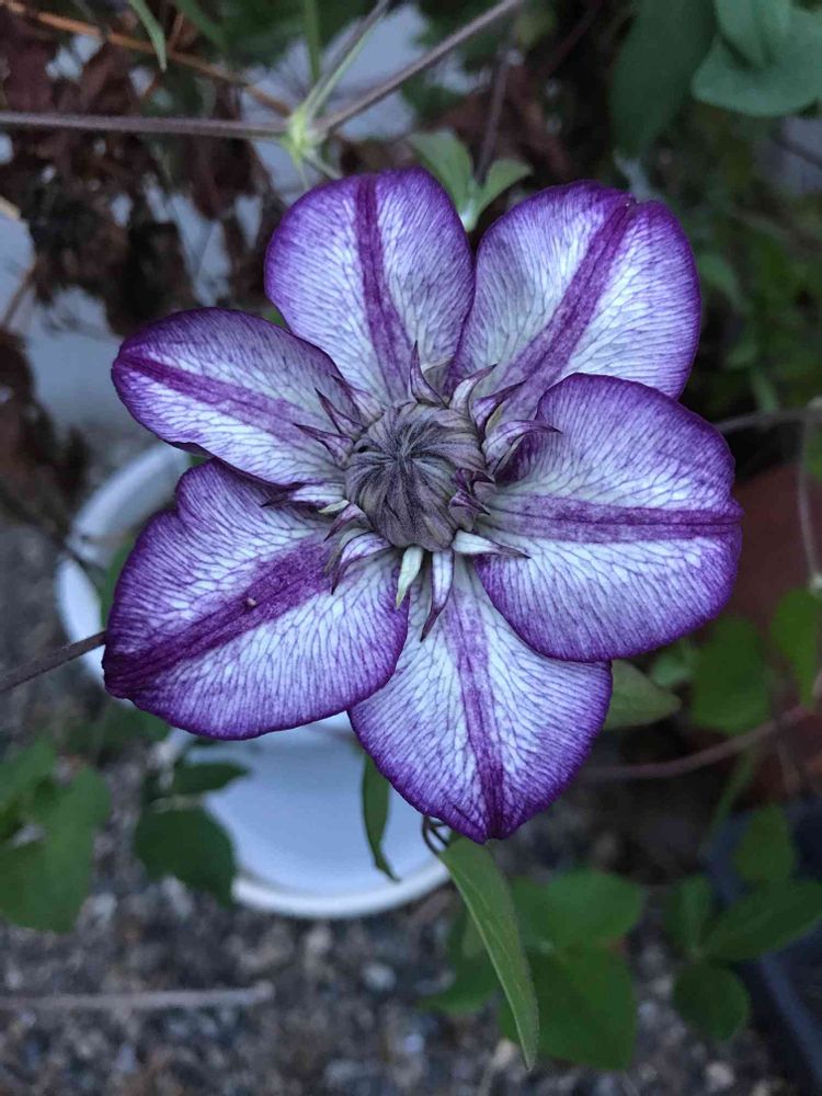 頂きもののクレマチスで、お名前はわかりませんが、変わった感じのお花が咲き始めました💜