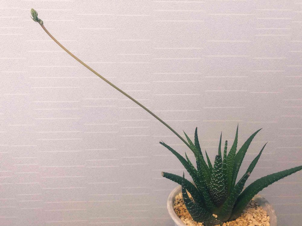 花芽が出てから1週間が経過しました。まっすぐ伸びていた茎もいい感じに伸び、花芽も少し大きくなってきました🌱あと何日で咲くかな〜🌸