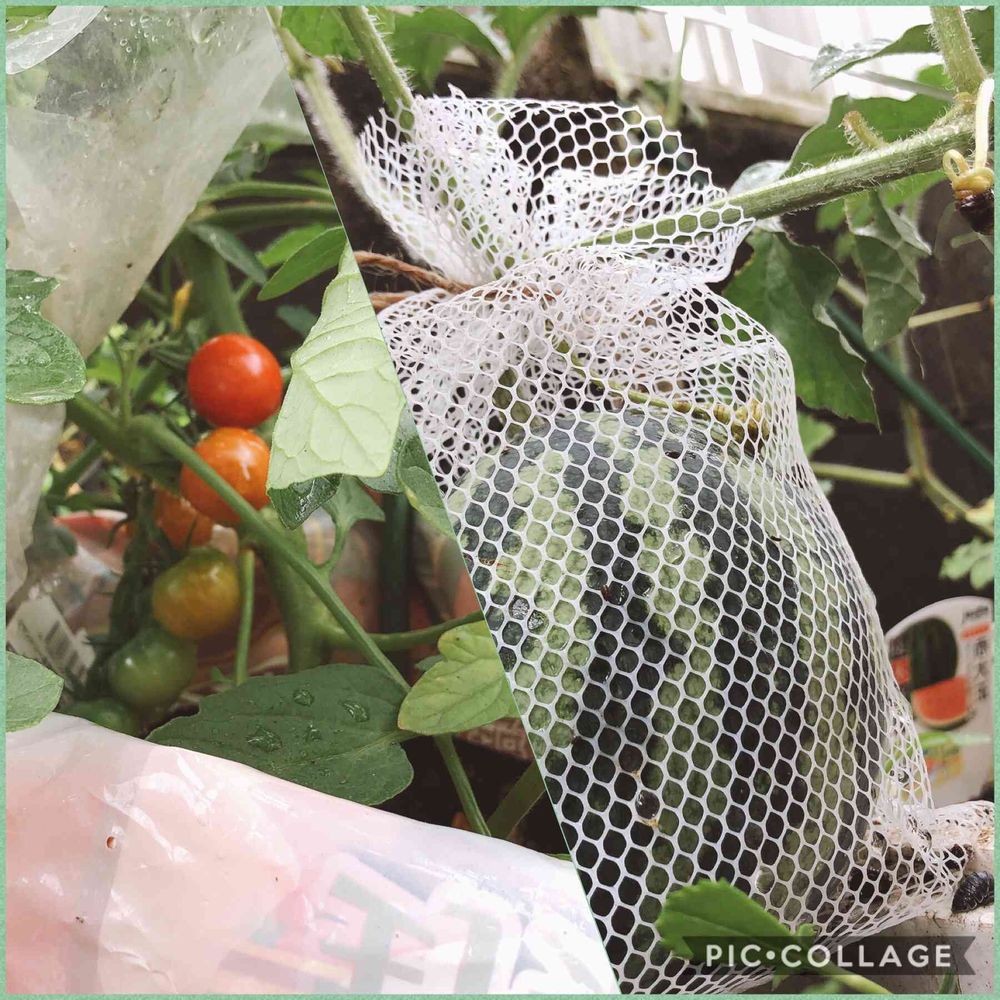 トマトにはビニールで部分屋根を付けました🍅