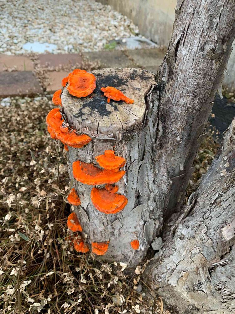 鮮やかなオレンジ、作り物かと思いました。サルノコシカケの種類ですか、、?