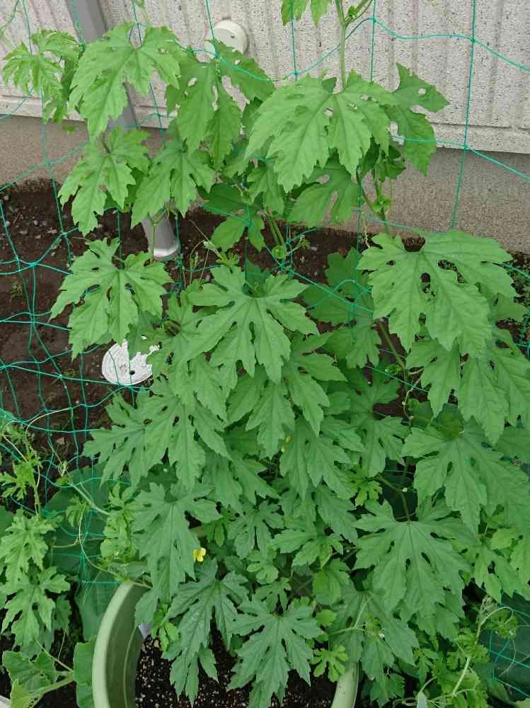 したにど根性カボチャも生えてるので、実生ゴーヤさんも泥はね等もなく快適な模様です(*´ー`*)