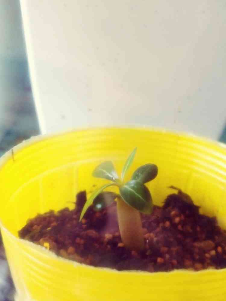 2月に種まきし、ひとつだけ発芽。ミニ温室があるから、と低い気温の中育ててしまいました。可哀相なことをしましたが健気に育ってくれています。可愛い♥