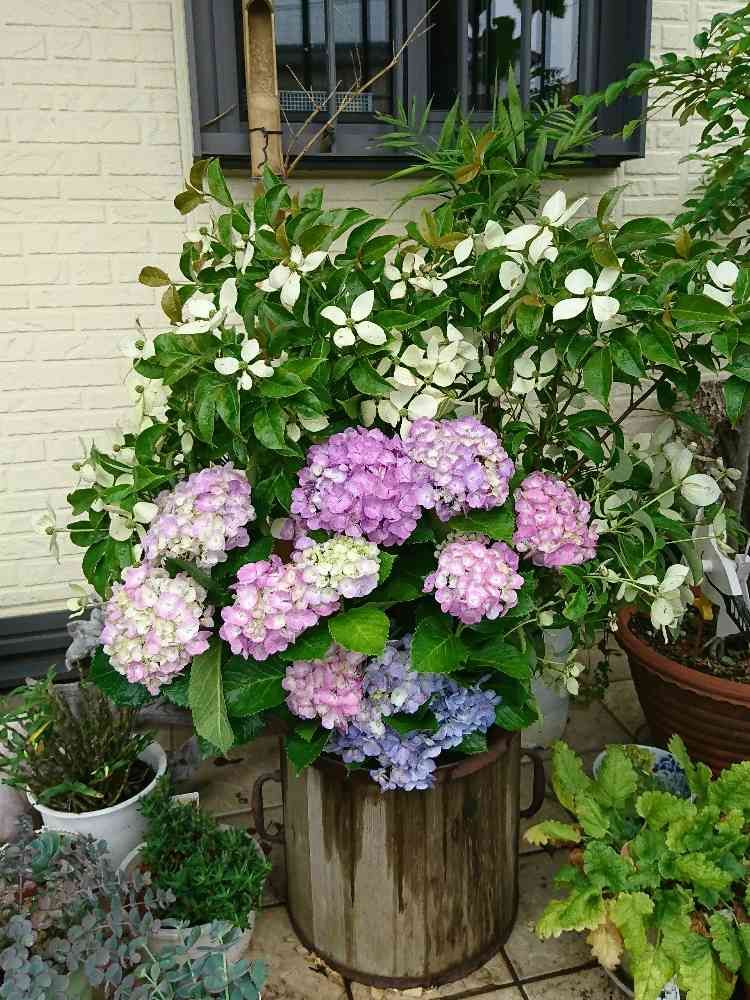 やまぼうしと紫陽花を頂いたので投げ入れで活けました❗