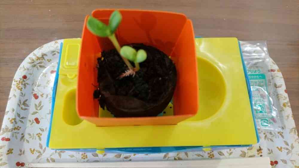 次男の蒔いたミニひまわり🌻順調に🌱が☺