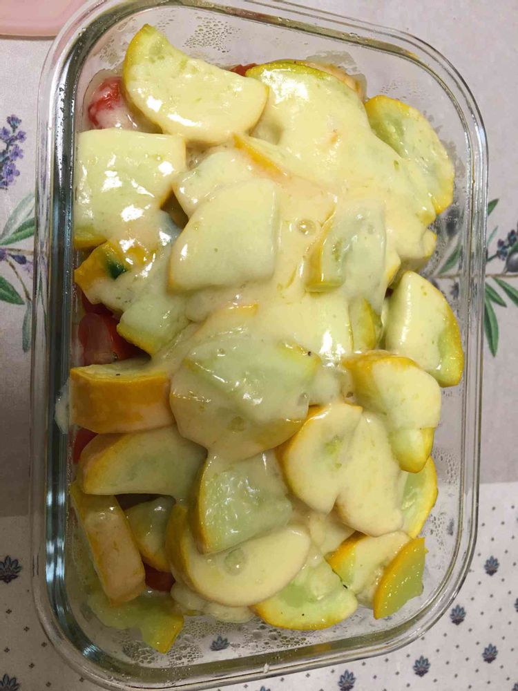 ズッキーニ 第1号と第4号をうちの奥さんがミニトマトと炒めてチーズをのせてチンした料理を作ってくれました👍😊