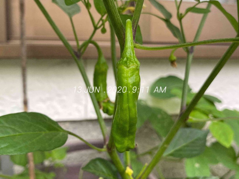 小さめのプランターで育てている獅子唐、2つできてました♡