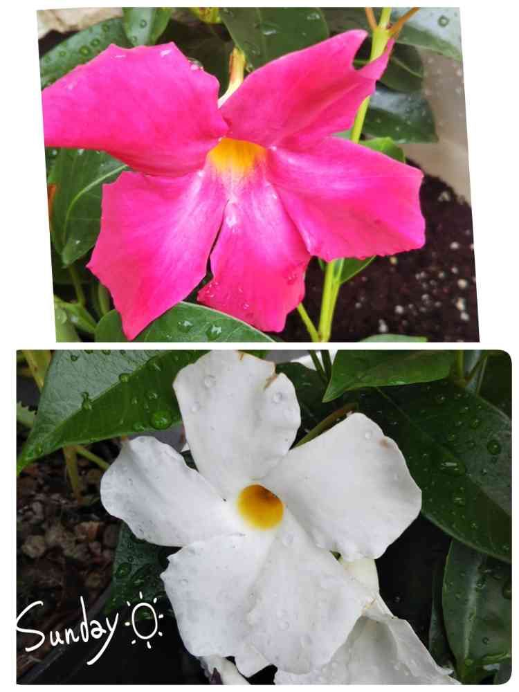 昨日から今朝の雨で白のサンパラソルの花がヨレヨレに…