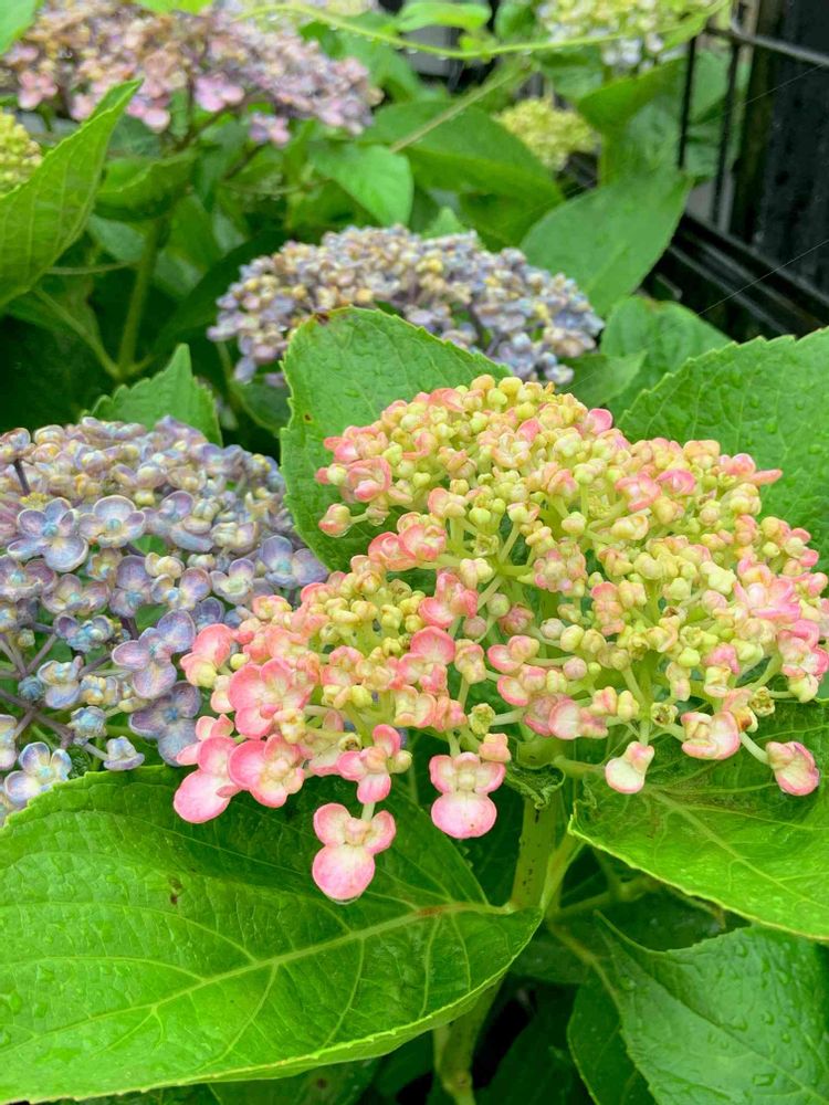 優美な紫陽花の多い中、金平糖の様なコロンと可愛らしいオタフク紫陽花です。こんな可愛い紫陽花に小さなカタツムリでも乗っていたら、今季一番の作品になったかも^_^