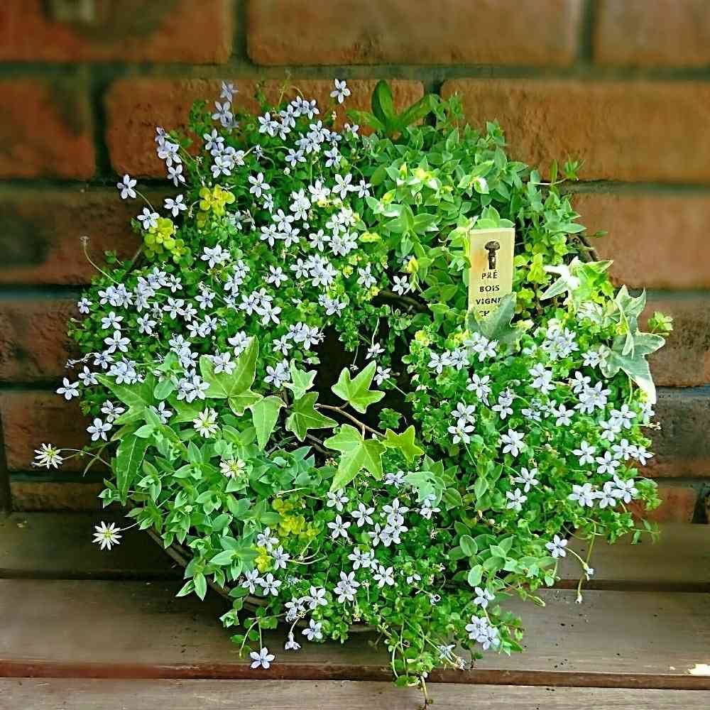 こんにちは!リースの寄せ植えめっちゃ可愛い❤この、ブルーの星形の子、うちにもあるんです!冬には葉っぱもなくなるのに、今また復活して咲いてきてます。なんて名前だったか忘れてしまいました(^_^;)おそろいで嬉しいです(*^^*)♪