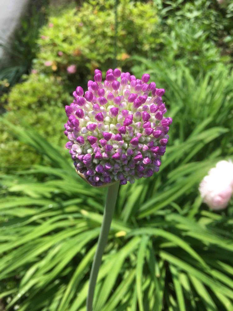 チューリップが咲いてた場所から、にょきにょき出てきて、葉っぱが似てるので、あれ⁈って思ってるうちにネギ坊主君が登場しました(^ ^)