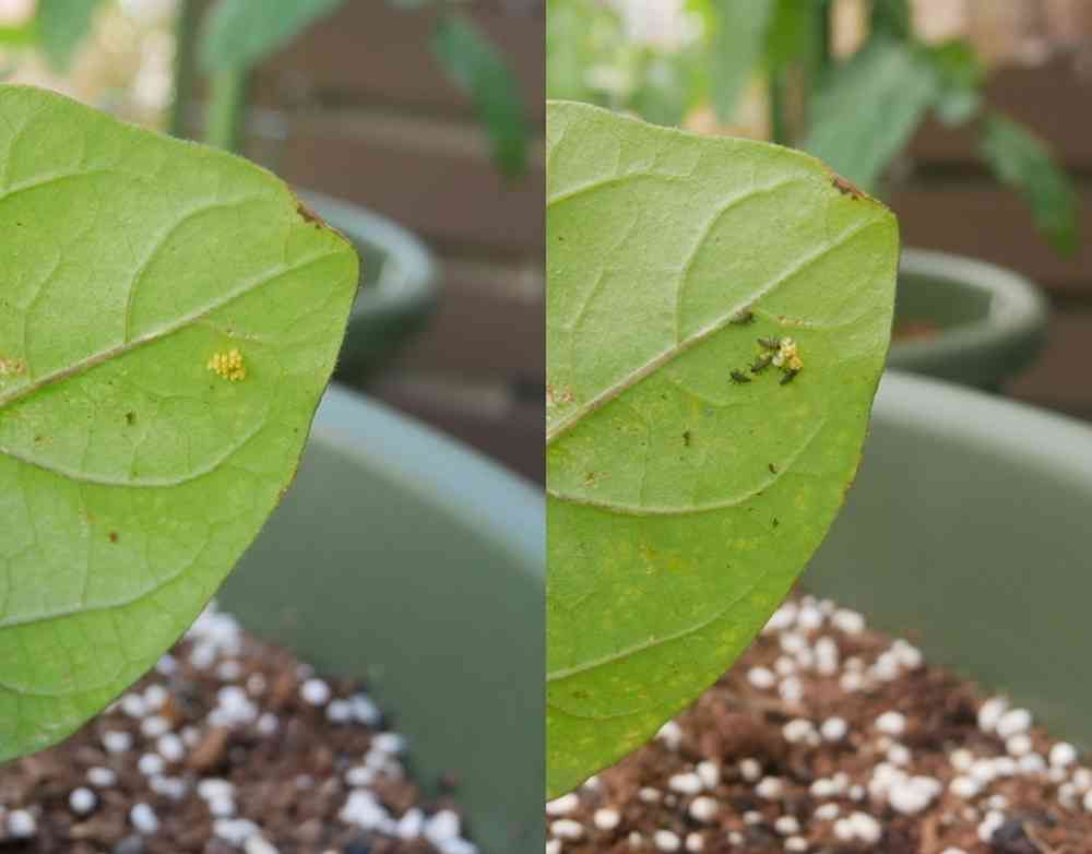 3日目に幼虫が生まれたところを見ることができました。