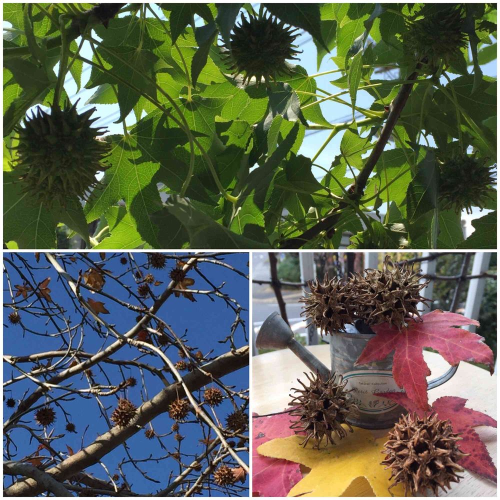 初夏から秋🍁のモミジバフウの葉っぱと実です。