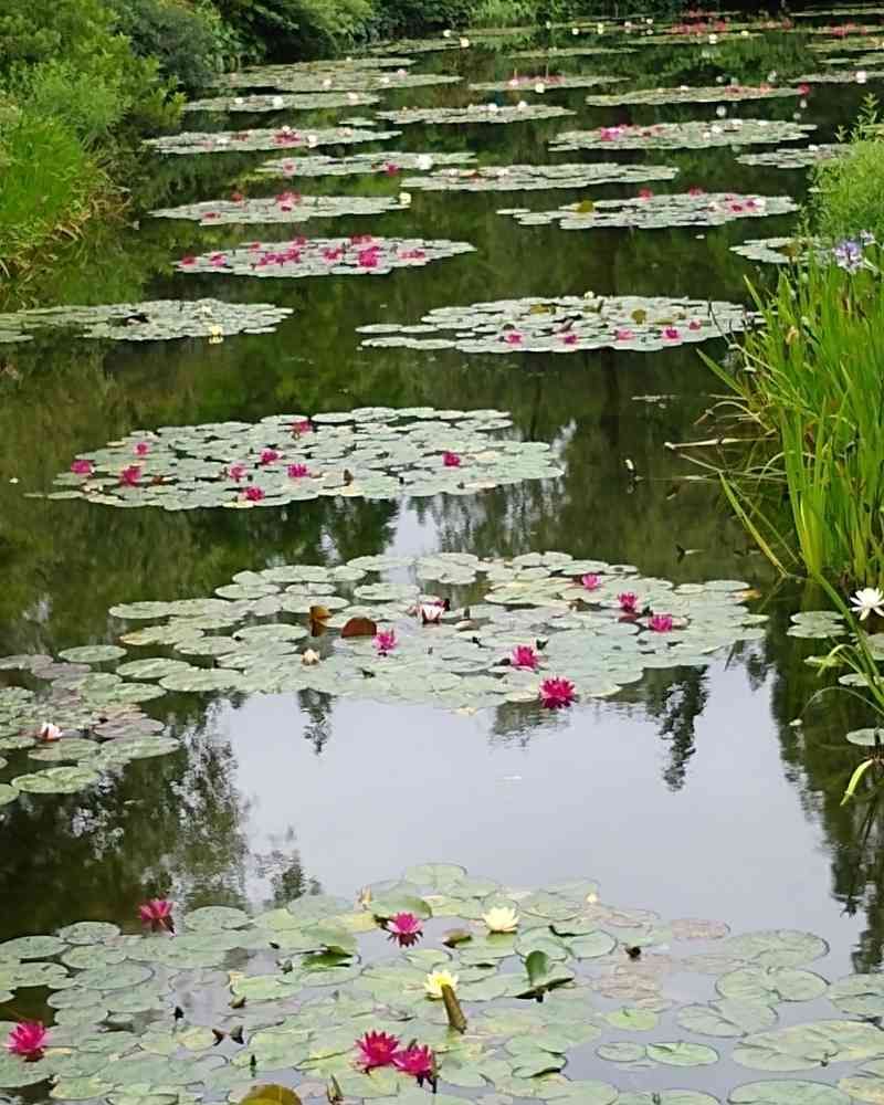 広々としたモネの庭、赤系の睡蓮💗が