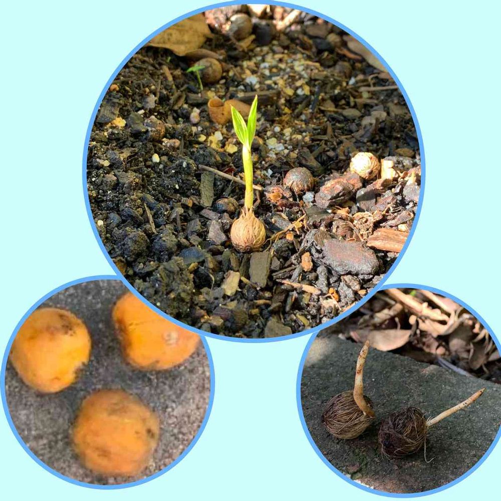 果肉が腐って種になったものが無数に落ちていますが既に発根しているもの、発芽しているものもいくつか🌱