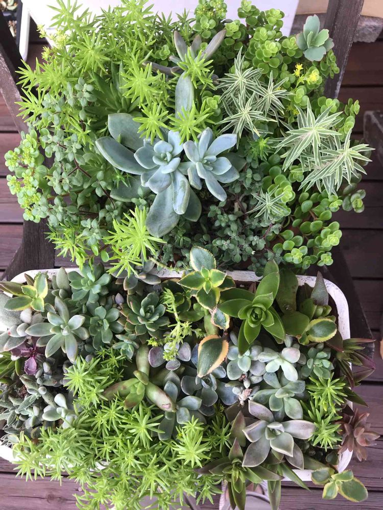 形の悪い子 葉っぱの取れちゃった子 伸び過ぎたセダムたち、とりあえず入れておく鉢ですが