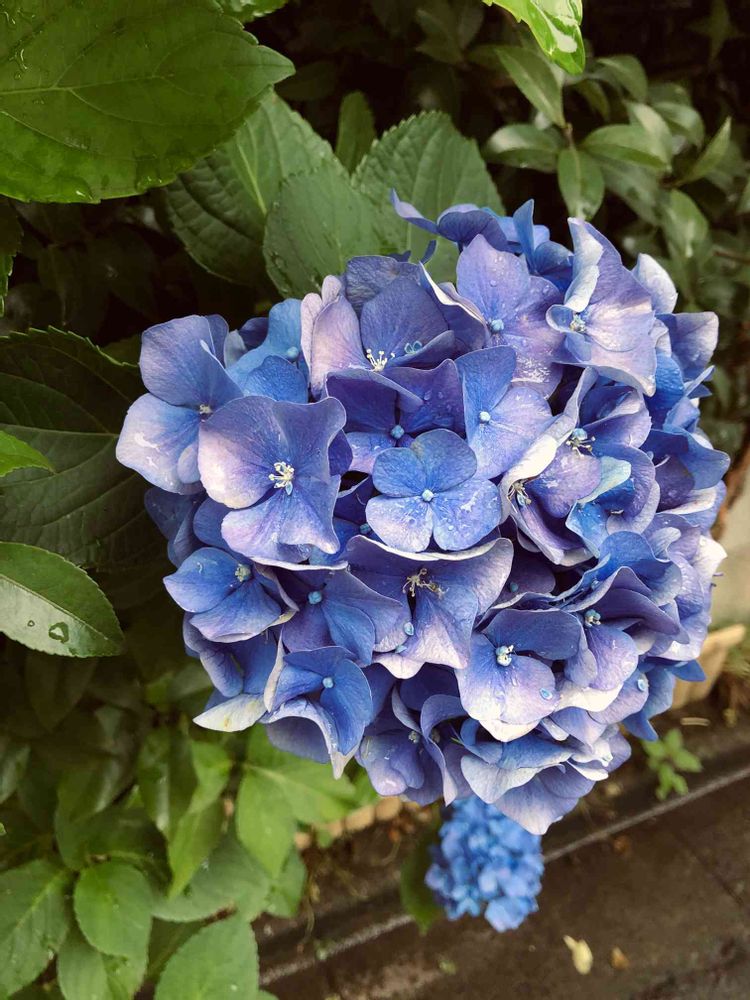 昨日の雨上がりのお散歩途中の紫陽花💙