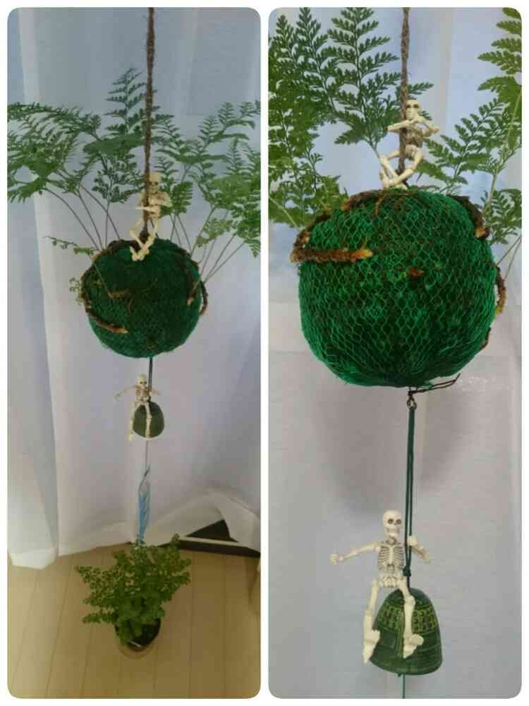 上と下は別物です。苔玉は麻紐にぶら下がって、更に風鈴がついています。