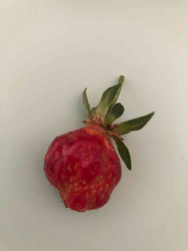 はじめのいちご。ひとつ食べてみたら、甘酸っぱい(*≧∀≦*) のが育ったよ。良かった。🍓