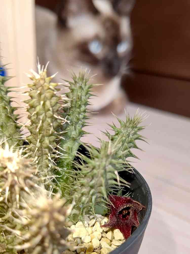 写真が撮りにくいところに咲いたので、まごまごしていたら猫に襲われそうに🌵…