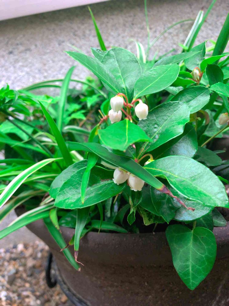 さっき見たら、可愛らしいベル型の花が♡チェッカーベリーの花って可愛いんですねー。
