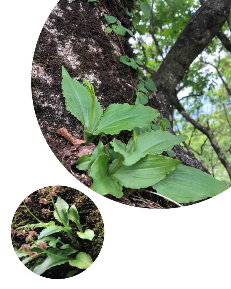 🌱フガクスズムシソウ🌱。写真左下が花が咲いた時で、ネットからの引用です😅🤣見つけた時はまだ葉っぱ🌱だけですね☺️花はもうすぐかな🌸今度は、花の咲いている時に❗️