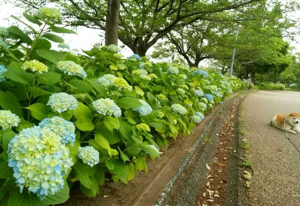 毎朝の散歩道がこれから暫くは「アジサイ通り」に(^^♪