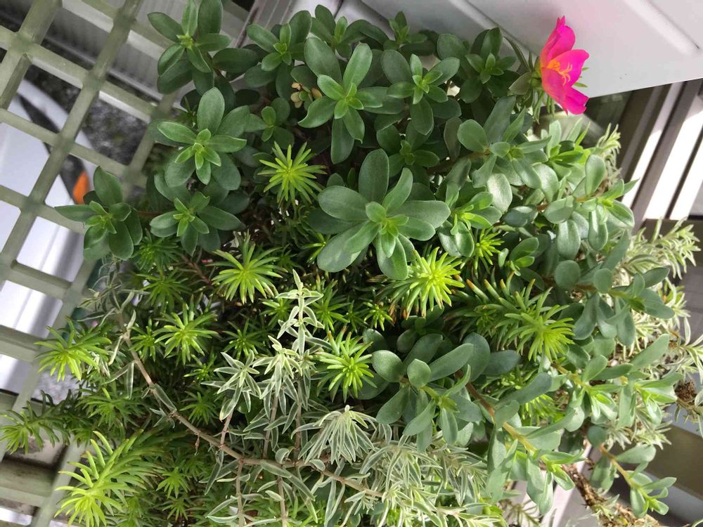 ポーチュラカ^_^セダムと入り乱れてますが、花が咲きました😊