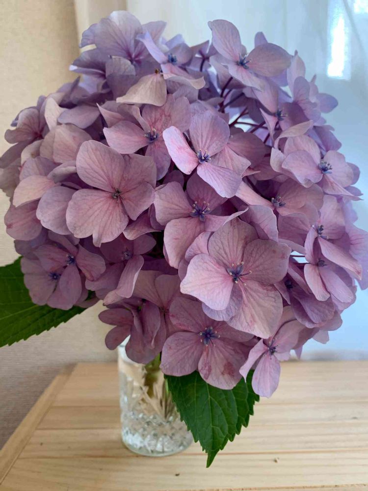 母から贈られてきた紫陽花(以前投稿)がしおしおだったのが元気になりました!しゃっきり!