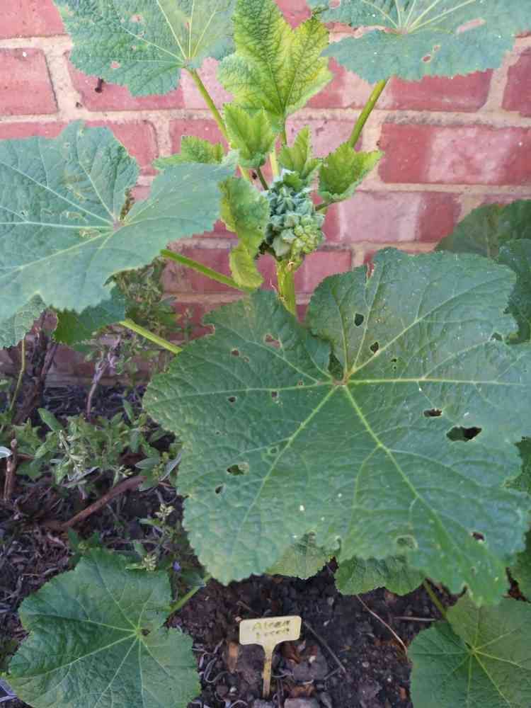 プレートの文字も色褪せてよく読めなくなっちゃってるけど、Alcea Rosea?って何だっけ?