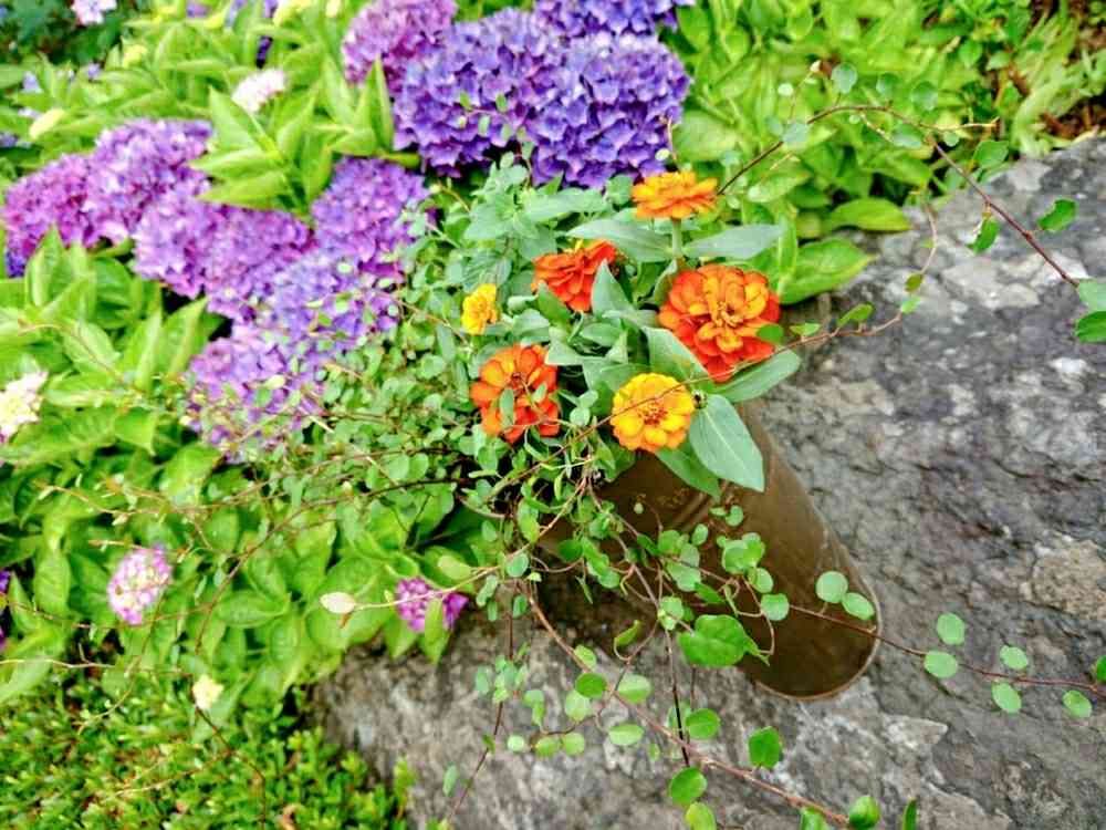ワイヤープランツとビタミンカラーのジニア、見ているだけで元気がもらえます✨