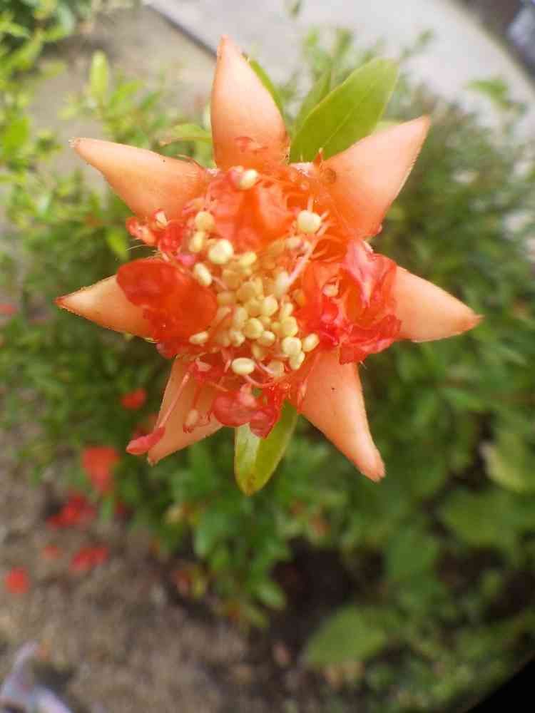 雨のなか、花びらだけ取れて、こんな7角の固い咢の様なのが可愛らしい〰️💖花の名前はたぶんヒメザクロでした➰🥰