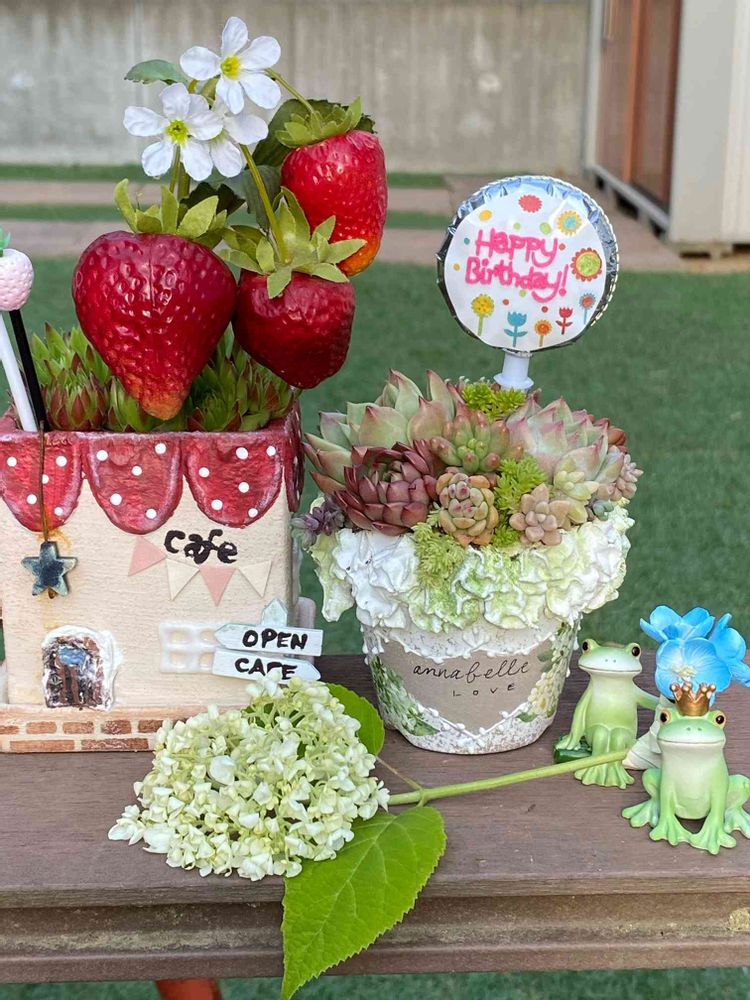アナベル鉢にeriちゃんの素敵な寄植え。とってもステキ~(❁´∀`❁)*✲゚*